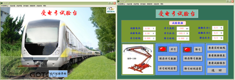 Can be used for automatic test of the static pressure characteristic curve of a subway vehicle's pantograph. It measures the static contact pressure, bowing time, and the maximum height of the bow. It has the function of measuring the height and pressure of the lifting bow and forming a curve graph function, and it is suitable for the minimum movement air. Pressure, start-up force, rapid drop of the bow function, air pipeline leak pressure maintenance state testing test. The equipment provides a variety of test conditions that meet the pantograph process range, with computer automatic control and information management functions.