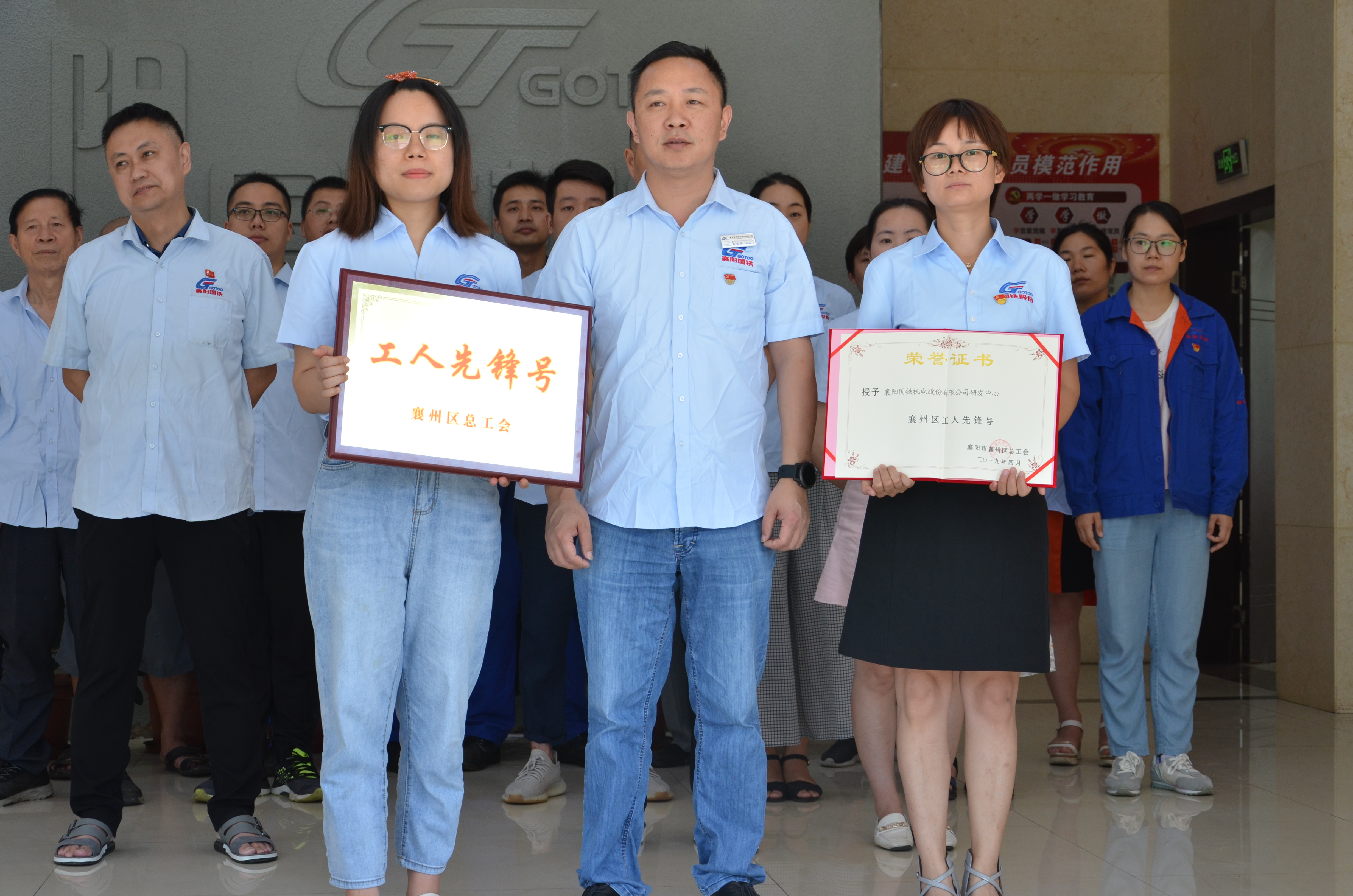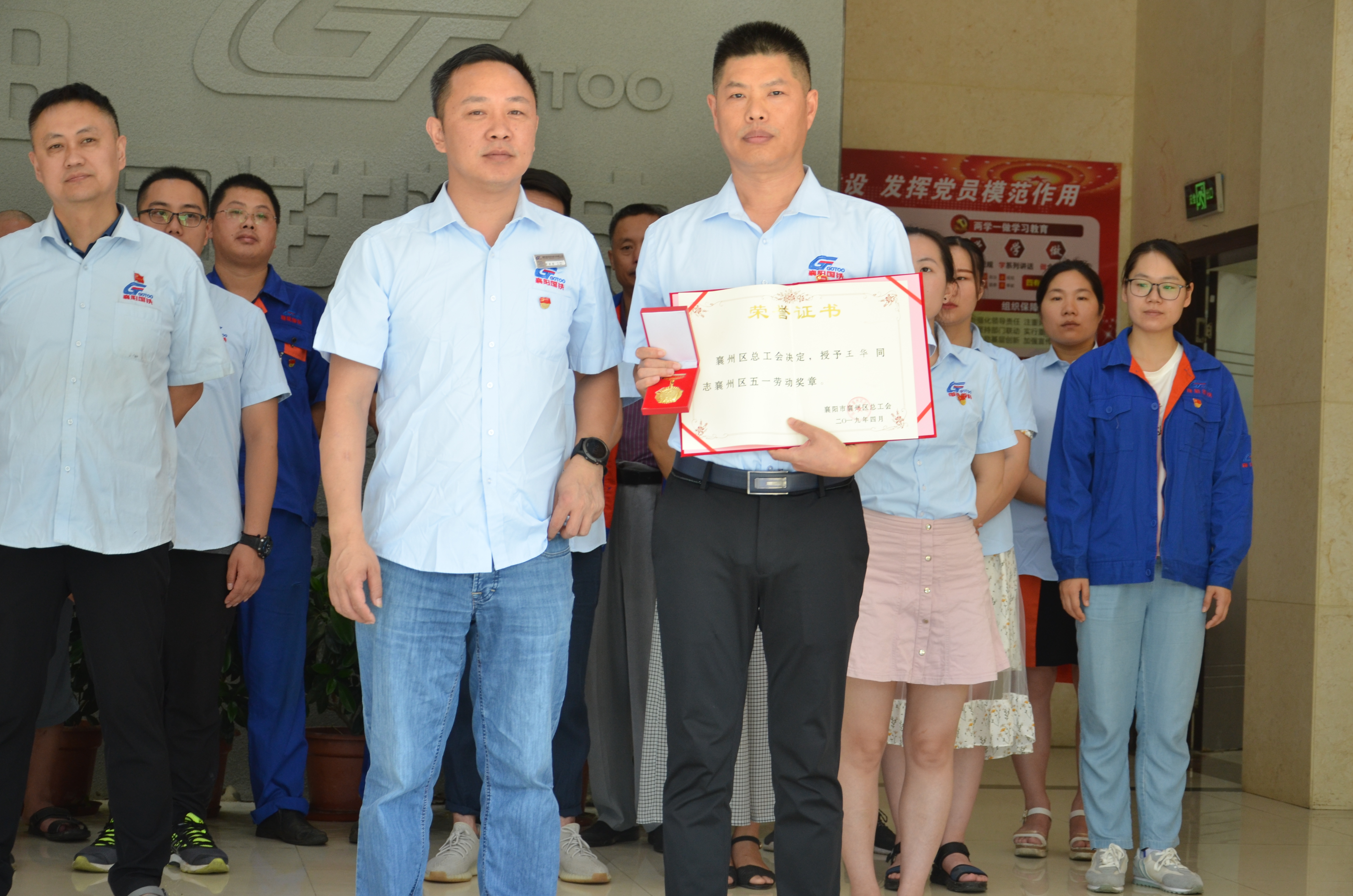 襄州區(qū)總工會(huì)決定,授予“王華同志襄州區(qū)五一勞動(dòng)獎(jiǎng)?wù)隆保皇谟琛跋尻枃F機(jī)電股份有限公司研發(fā)中心襄陽工人先鋒號(hào)”獎(jiǎng)?wù)?。由黨支部書記代表代表襄州區(qū)總工會(huì)授予獲獎(jiǎng)部門獎(jiǎng)?wù)?、證書、獎(jiǎng)牌。