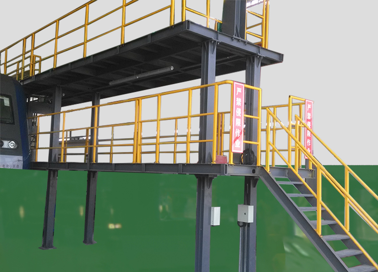 三層整備作業(yè)平臺(tái)適用于各型機(jī)車(chē)檢修整備作業(yè),方便檢修整備作業(yè)人員對(duì)機(jī)車(chē)車(chē)上部件的檢查、檢測(cè)、清潔保養(yǎng),保證檢修整備人員上下機(jī)車(chē)的安全。